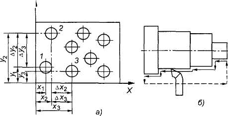 Системы ЧПУ, обеспечивающие точную установку исполнительного механизма в заданное положение, называют позиционными. Исполнительный орган в этом случае в определенной последовательности обходит заданные координаты по осям X и Y (рис. 8). При этом сначала выполняется установка (позиционирование) исполнительного органа в точке с заданными координатами, а затем — обработка. Разновидностью позиционных СЧПУ являются прямоугольные СЧПУ, в которых программируются не точки, а отдельные отрезки, но при этом продольная и поперечная подачи разделены во времени.