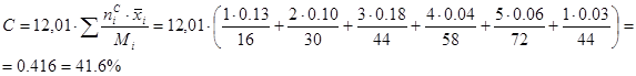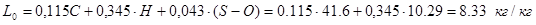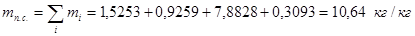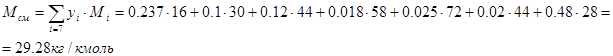 4.1.3. Молекулярная масса смеси газов в топливе: