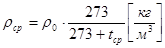 Плотность дымовых газов при средней температуре определяется по формуле: