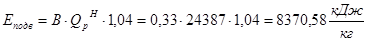 или 24,095%, где Еподв – эксергия топлива, МДж/кг; Еотв – эксергия, воспринятая потоком водяного пара в печи и котле-утилизаторе.