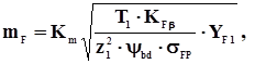 2.11.2 Определение модуля зубчатой передачи расчетом на выносливость зубьев при изгибе