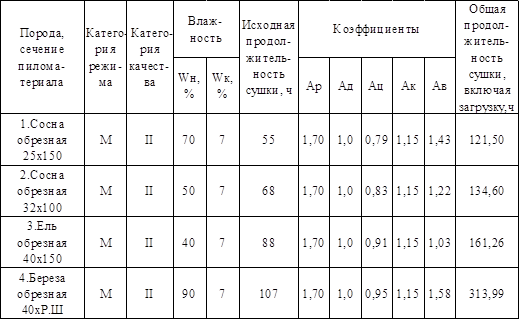 Таблица 2.1 - Определение продолжительности сушки пиломатериалов