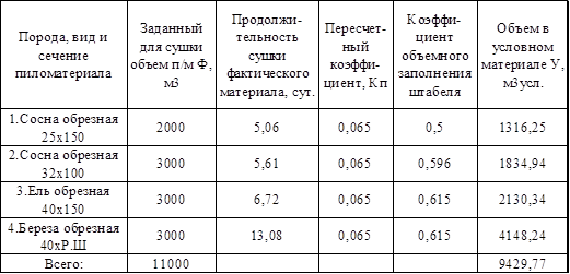где Ф – объём фактически высушенного или подлежащего сушке пиломатериала данного размера и породы (задаётся в спецификации), м3 ;