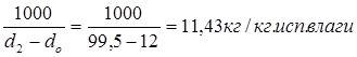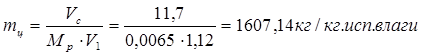 Масса влаги, испаряемой за время одного оборота сушильной камеры, m об.кам ., кг/об.