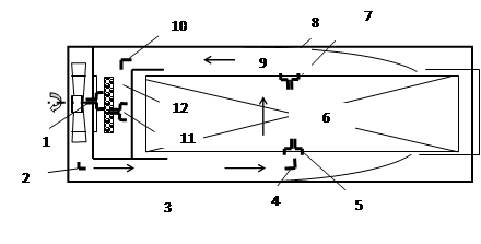 В камерах для побуждения движения воздуха стоит роторный цен-тробежный вентилятор, конструкции проф. Микита Э.А., унифицированный, с радиальными лопатками (для повышения надежности и долговечности его частота вращения n=250-270 об/мин).