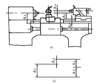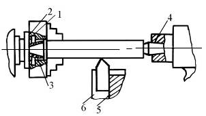 У токарного верстата (рис. 1) – це передній кінець шпинделя, конус пінолі задньої бабки, поверхні різцетримача. Поверхні 1 і 2 (рис. 1) призначені для базування патрона, поверхня 3 – для переднього центра при обробці в центрах, поверхня 4 – для заднього центра, поверхні 5 і 6 визначають положення різця відносно оброблюваної поверхні і безпосередньо передають йому необхідний для обробки рух.