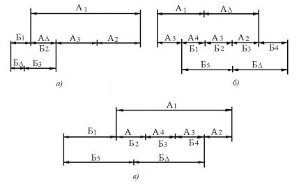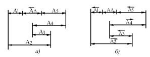 Рис. 9. Приклади розмірних ланцюгів: а – паралельно зв’язаний розмірний ланцюг;