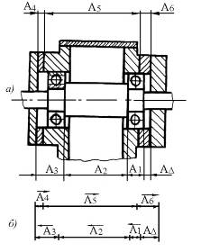 Рис. Конструкційний розмірний ланцюг: а) схема розмірного виду зв’язку; б) схема розмірного ланцюга