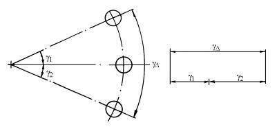 · кутові, ланки ланцюга є кутовими розмірами, відхилення яких можуть задаватись у лінійних величинах, віднесених до умовної довжини, або в градусах (рис. 8 а, б);