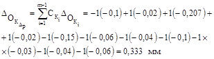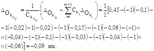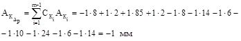 Розрахункова координата середини поля допуску замикальної ланки за формулою (4.27) дорівнює [2]: