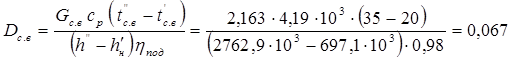 Расход пара на деаэрацию и подогрев сырой воды принимается предварительно равным 9% D: