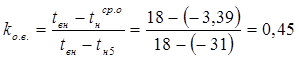 Температура наружного воздуха для рассчитываемого режима при средней температуре наиболее холодной пятидневки
