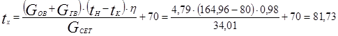 Температура прямой сетевой воды на выходе из подогревателей сетевой воды: