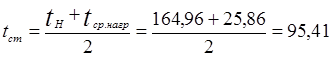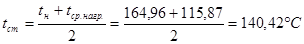 Плотность определяется по средней температуре, которая рассчитывается по формуле: