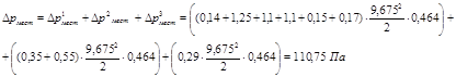 Определяем потери напора в местном сопротивлении в Па на участке по формуле: