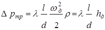 Потери напора на трение, Па определяют по формуле Дарси-Вейсбаха:
