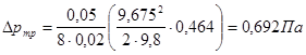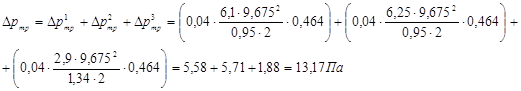 Определяем потери напора на трение на участке, Па, по формуле Дарси-Вейсбаха: