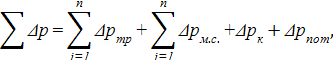 Когда теплоноситель не изменяет агрегатного состояния, расчет аэродинамики состоит изопределения суммы потерь напора в местных сопротивлениях и потерь напора на трение: