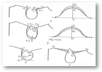 Пластику поверхности оката рукава в местах его сопряжения с проймой характеризует конфигурация рельефа оката на этом участке, который может быть слабо (рис. 8, а), средне (рис. 8, б) и резко выраженным (рис. 8,в).