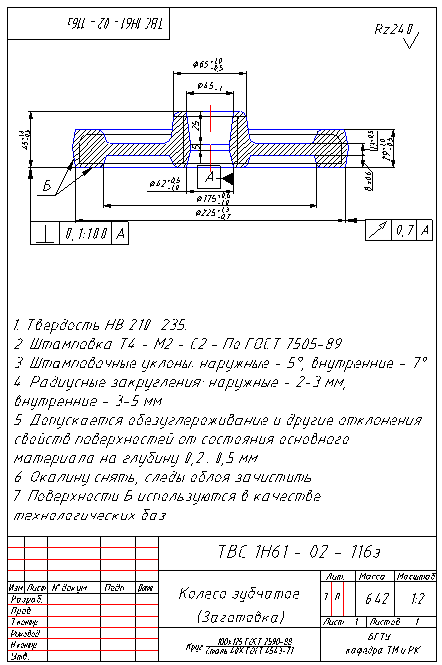 Требования к точности и шероховатости всех функциональных и не функциональных поверхностей указаны на чертеже. Необрабатываемые поверхности могут сохранять штамповочные уклоны и радиусы.