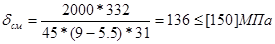 где M Z - изгибающий момент в горизонтальной плоскости, M Z =67.7 Н×м; M Y - изгибающий момент в вертикальной плоскости M Y = 98.2 Н×м.