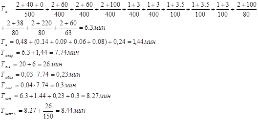 -время на получение инструмента до начала обработки и сдачу после окончания, мин;