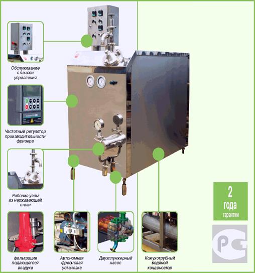 Оборудование для производства мягкого мороженого. Непрерывное фризерование мороженого
