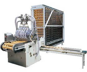 Этот процесс производится путем присоединения к линии различных устройств. После напитывания мороженого производства различными ингредиентами смесь поступает в дозирующие устройства, формирующие вид мороженого.