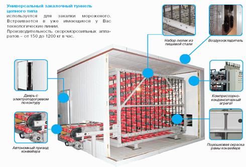 Скороморозильные аппараты поставляются как для работы на фреоне, так и на аммиаке.