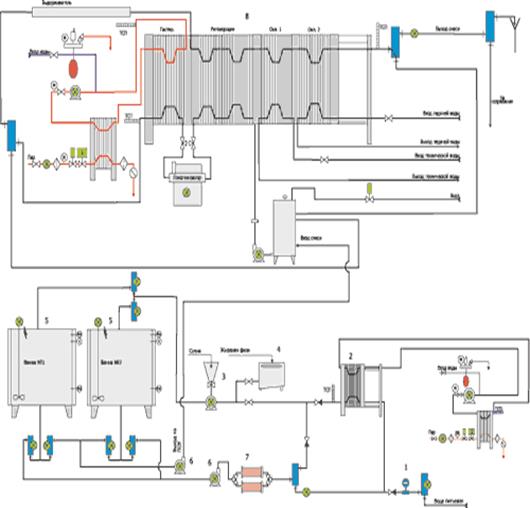 - последующей гомогенизации, охлаждения и созревания и подачи на фризерование.