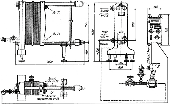 После смешивания компонентов пастеризации в емкостном аппарате, фильтрации и гомогенизации смесь мороженого температурой 80...86 °С подается в пластинчатый охладитель, где охлаждается двухступенчато — холодной водой и рассолом.