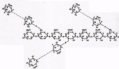 Начало систематического изучения крахмала следует отнести к 1811 году, когда русский ученый К. Кирхгофф [7] обнаружил превращение крахмала в сахар под влиянием минеральной кислоты. Осахаривание крахмала происходило также и при действии водной вытяжки из солода, однако, получающийся при этом "солодовый сахар" (мальтоза) был построен более сложно, так как при кислотном гидролизе он в свою очередь превращался в виноградный сахар - конечный продукт кислотного гидролиза крахмала.