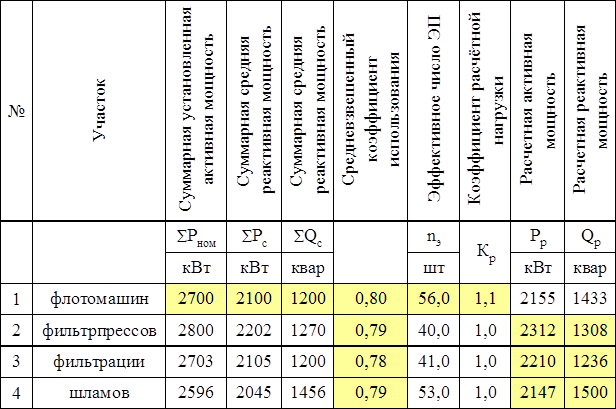 7.2 Расчёт электрических нагрузок в питающей и распределительной сети участка