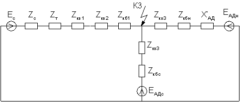7.5.1 Расчёт начального значения периодической составляющей тока трёхфазного короткого замыкания.