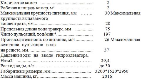 Основные данные о режимах работы отсадочных машин для руд приведены в табл. 1.