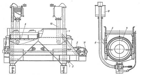 Другой особенностью машины является устройство для разгрузки крупнозернистого подрешетного материала. В качестве разгрузчика применен простой по конструкции гидроэлеватор, представляющий собой в принципе водоструйный насос.