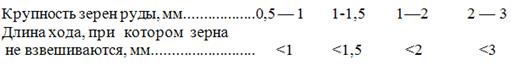 Установлено, что взвешивание рудных зерен различной крупности в диафрагмовых отсадочных машинах прекращается при следующих длинах ходов диафрагмы: