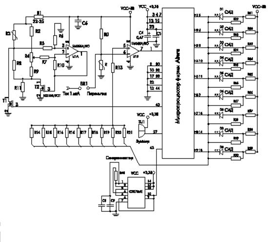 Рисунок 2 – Схема электрическая принципиальная индикатора оксида углерода и водорода СО-12.