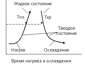 Рис. 5 Кривые нагрева и охлаждения аморфного тела