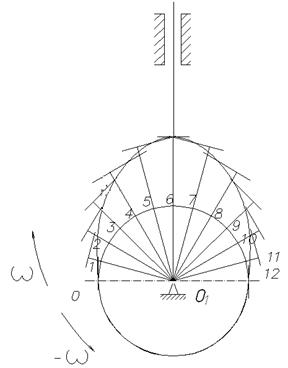 Строим 12 планов механизма, приняв за начало отсчёта крайнее положение, соответствующее началу рабочего хода механизма.