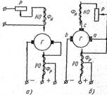 Відмітною особливістю генераторів такої схеми є використання принципу самозбудження (мал. 1, б), для цього є дві обмотки збудження — НО і РО. В результаті генератора індукується магнітним потоком обмотки, приєднаної до щіток генератора а і с . Напруга між цими щітками майже постійно по величині, тому магнітний потік Фн практично не міняється. Обмотка генератора НО називається обмоткою незалежного збудження.