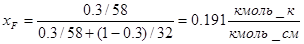 Концентрация легколетучего компонента в исходной смеси 30%масс.