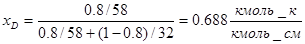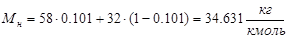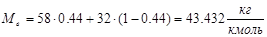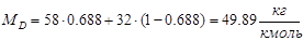 - мольные массы дистиллята, кубового остатка и питания исходной смеси, определяемые по формулам (9а, б, в), кг/кмоль