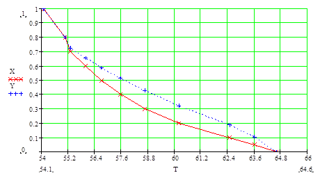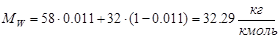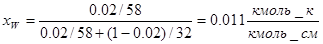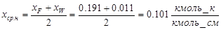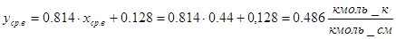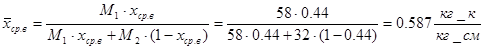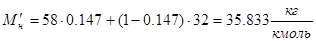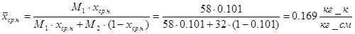 где М1 , М2 - молярные массы легколетучего компонента и инертной фазы (M1 = 58 кг/кмоль , M2 = 32 кг/кмоль ). Тогда получим: