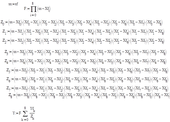 Данная формула предназначена для нахождения значения функции на любом интервале, если эта функция задана в виде табличных значений. Она имеет вид: