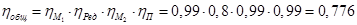 =0,8 - коэффициент полезного действия червячного редуктора;