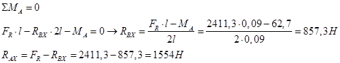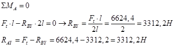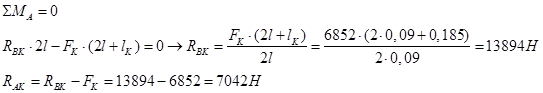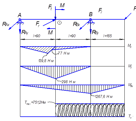 Рассматриваем самый нагруженный случай, когда реакции от консольной силы совпадают с реакциями от сил в зацеплении: