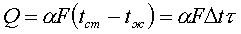 Количество теплоты, передаваемой от горячего теплоносителя, прямо пропорционально площади теплопередающей поверхности F, действующей средней разности температур Δt, продолжительности процесса τ и коэффициенту теплоотдачи