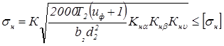 где [σн ]- допускаемое контактное напряжение, Н/мм2 ;