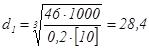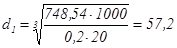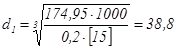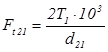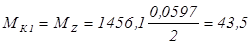 где Т1 – крутящийся момент промежуточного вала редуктора, Н·м;